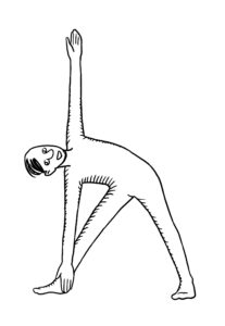 Rozciąga i wzmacnia nogi, biodra, klatkę piersiową, ramiona.