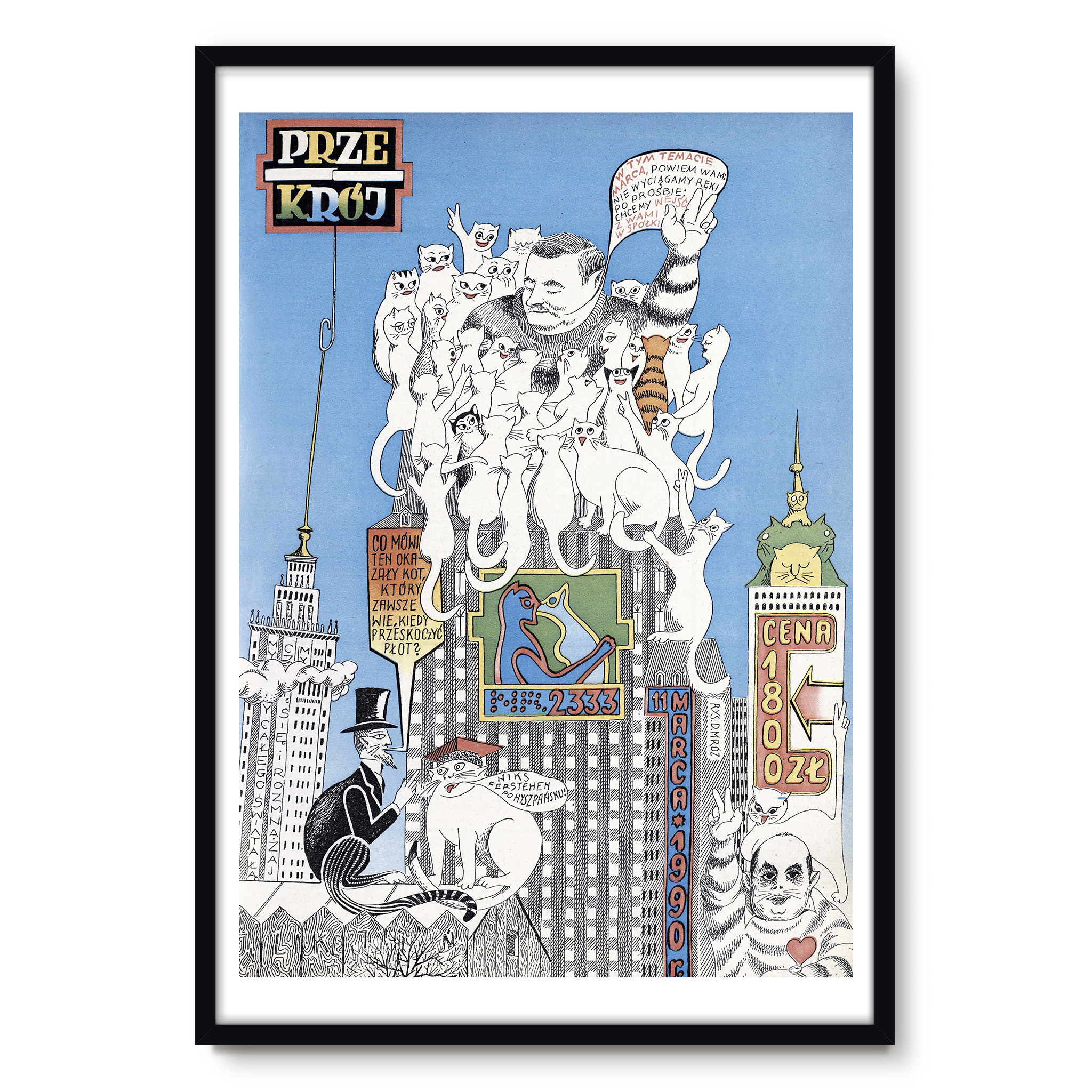 Grafika autorstwa Daniela Mroza zdobiąca okładkę 2333. numeru tygodnika „Przekrój” z 1990 r. przedstawia kraj rządzony przez koty (tłuste i chude).
