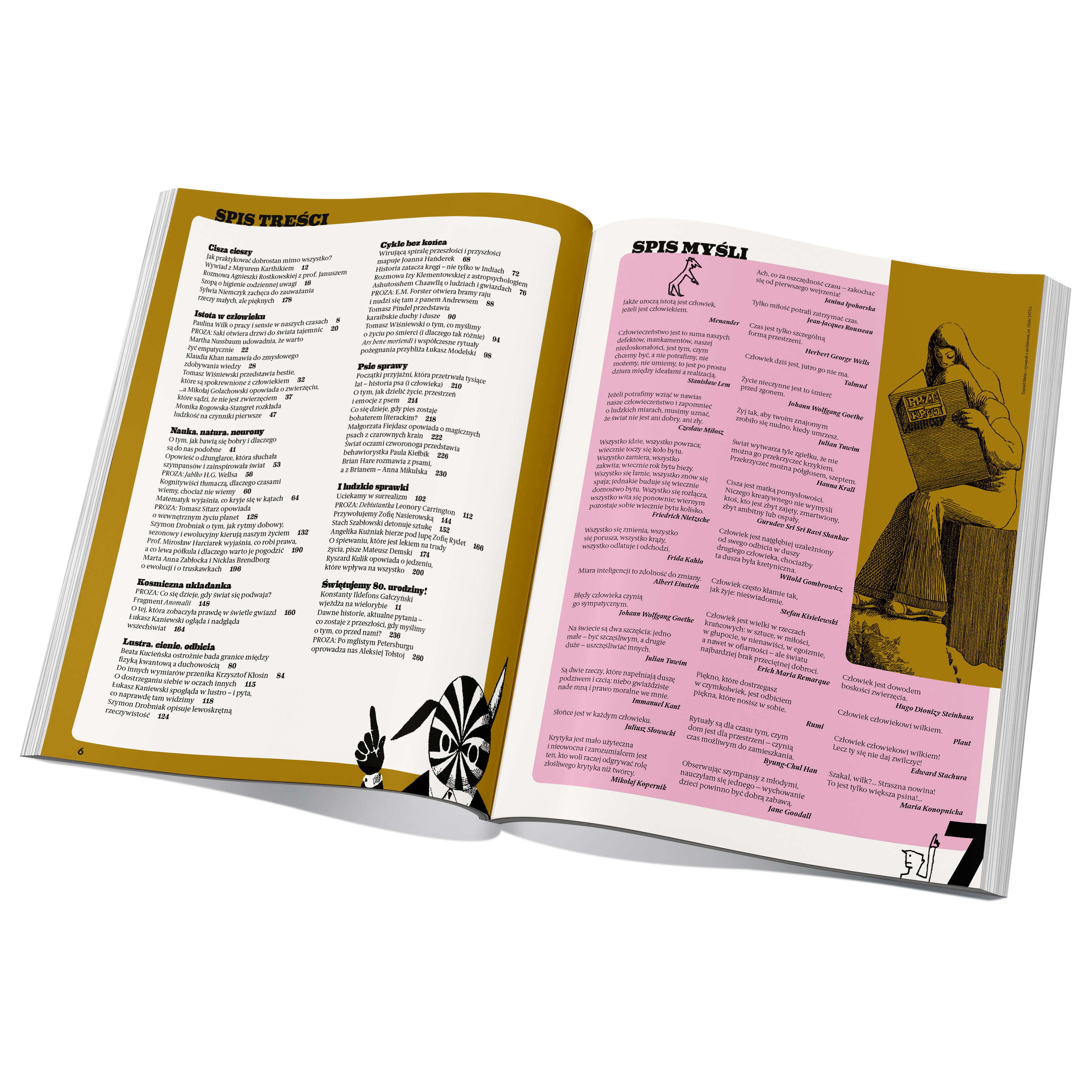 W środku spotkacie m.in. Briana Hare’a, Jane Goodall, Klaudię Khan, Łukasza Kaniewskiego, Marthę Nussbaum, Monikę Rogowską-Stangret, Nicklasa Brendborga, Izę Klementowską, Szymona Drobniaka, Martę Annę Zabłocką, Angelikę Kuźniak, Mayura Karthika, Julię Pańków i Mateusza Demskiego. A że to numer jubileuszowy, mamy też niespodziankę: zaglądamy do archiwum i wyciągamy z niego prawdziwe skarby.